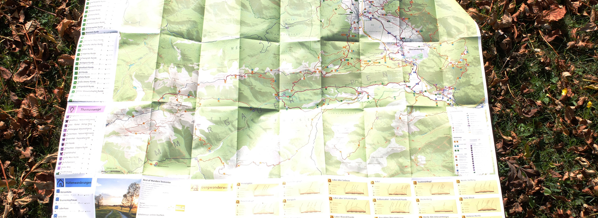 Cette carte de randonnée très complète a été élaborée en étroite collaboration avec l’équipe de la société Ammergauer Alpen GmbH. Les visiteurs y trouveront non seulement des sentiers thématiques variés, des randonnées en refuge, mais aussi des sentiers de randonnée hivernale et des randonnées alpines. Afin d’obtenir un aperçu rapide du niveau de difficulté, la carte est dotée de profils d’altitude. Il est ainsi possible de choisir la randonnée la mieux adaptée à la condition physique de chacun.