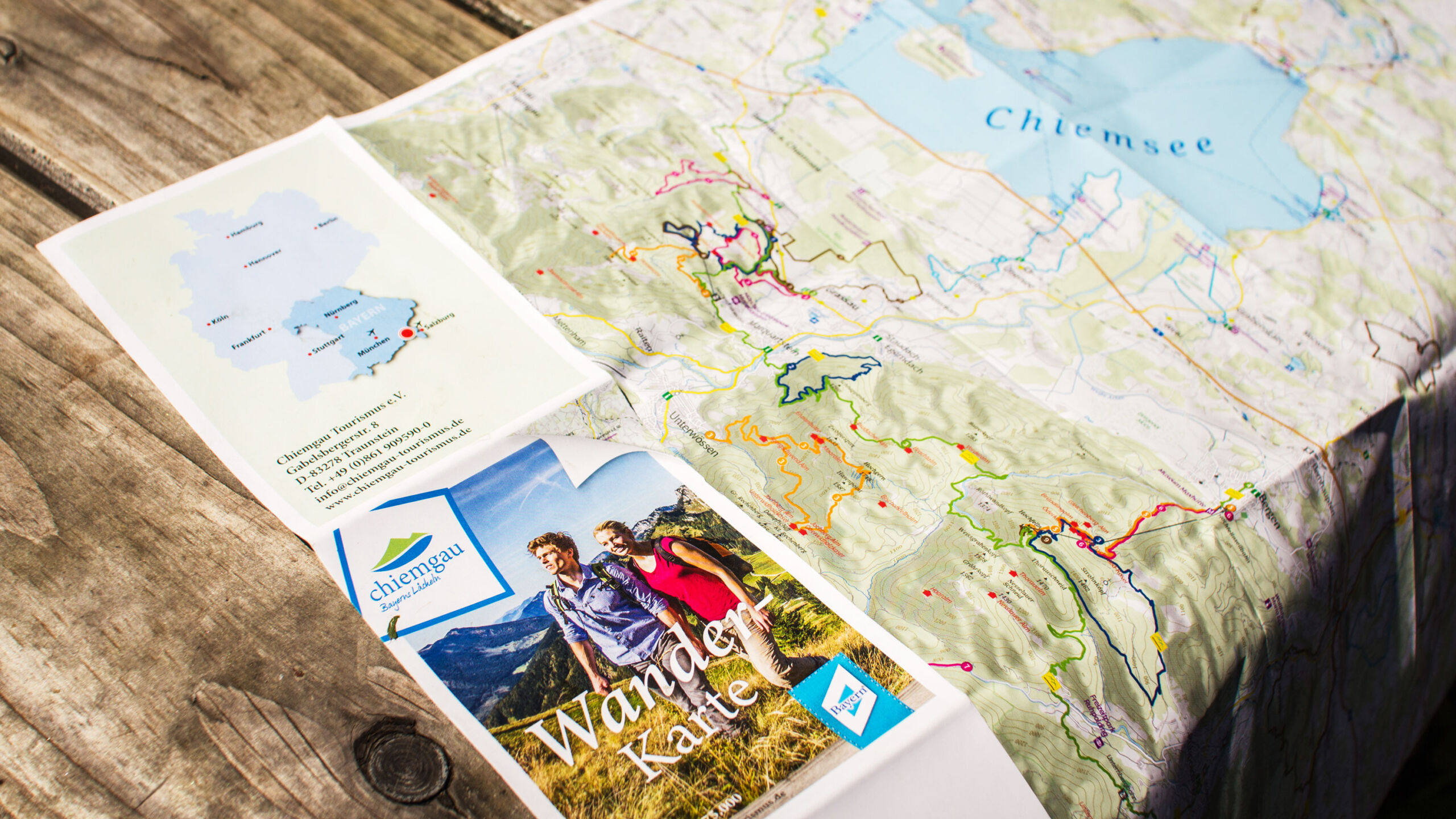 Dépliant sur la piste cyclable de l’Inn avec représentation cartographique de green-solutions